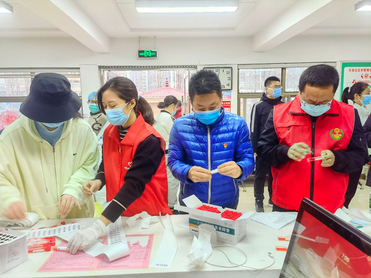 檢測完畢后,大家回到社區(qū)服務中心,繼續(xù)做各種后續(xù)工作,辛苦的一天經(jīng)常是朝五晚九甚至晝夜鏖戰(zhàn)。