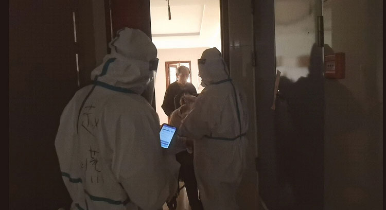 疫情初期每天都是入戶檢測,32層樓,共計200多人的檢測耗時接近一天。每天除了爬樓和不能坐的辛苦外,為了節(jié)省隔離服,大家都是不吃不喝不上廁所,天氣熱的時候全身濕透,天氣冷的時候凍的手都沒有知覺,雖然很辛苦,但大家依然在堅守。